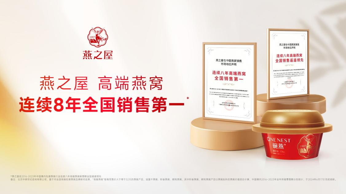效法羲和馭天馬,志在長(cháng)空牧群星。兩鬢斑白的方成如今還會(huì )時(shí)常想起自己20歲時(shí)的那個(gè)夏天,不甘人后、不畏艱險,向著(zhù)光的方向一往無(wú)前。作為燕窩行業(yè)的頭部企業(yè),燕之屋同樣堅持著(zhù)長(cháng)期主義,秉承著(zhù)“一碗好燕窩,滋潤天下人”的初心,26年來(lái)深耕不輟,為消費者帶來(lái)更健康、更營(yíng)養、更美味、更便捷的燕窩滋養體驗,為國民的高品質(zhì)美好生活助力。截至2023年,燕之屋已連續八年高端燕窩全國銷(xiāo)售第一*(*燕之屋在2016-2023年中國境內包裝燕窩行業(yè)連續八年高端燕窩銷(xiāo)售額全國第一,備注:北京中研世紀咨詢(xún)有限公司,基于對全國高端包裝燕窩品牌研究結果,“高端燕窩”指每克售價(jià)大于32元的燕窩產(chǎn)品,涵蓋干燕窩、即食燕窩、鮮燉燕窩,其中即食燕窩、鮮燉燕窩產(chǎn)品以燕窩投料的燕窩價(jià)值綜合計算,中國境內2016-2023年全年終端零售額分別統計;于2024年6月17日完成調研)。